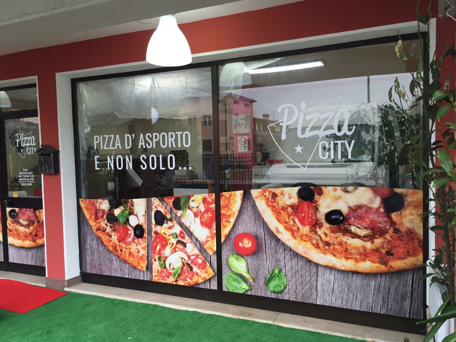 Grafica adesiva per vetrine e ingressi di negozi e showroom. Ideali per esporre logo, messaggi pubblicitari, orari o promozioni, stampate in quadricromia su vinile adesivo sagomabile, con finitura lucida o opaca.